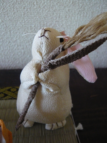 大きなお耳が可愛い兎ちゃんに すすきを持たせました。