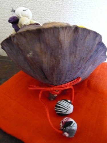 蓮の実に 可愛く縮緬のお花を詰めました♪