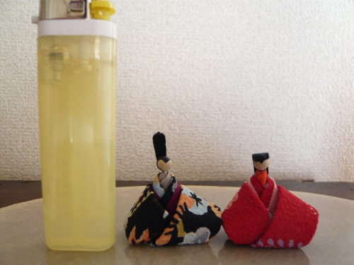 黒と赤の縮緬で ひな人形になりました(*^_^*)