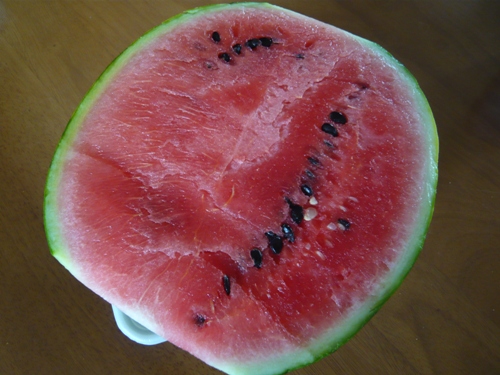 実家で毎年作っている 西瓜が届きました。