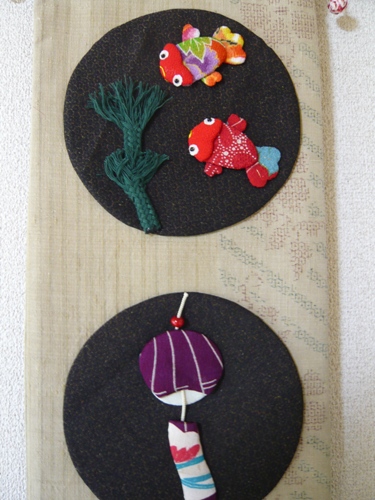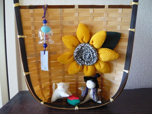 市販の和雑貨を利用して 夏の季節飾りを作りました。