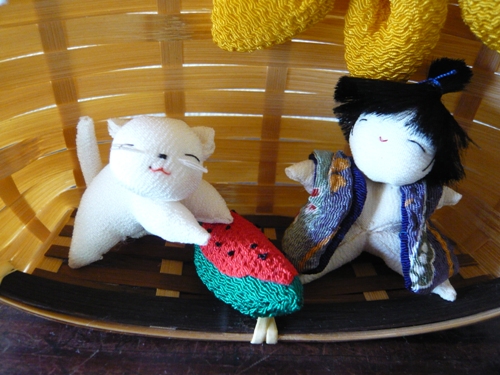 夏のスイカと可愛い猫ちゃんを♪定番童子も仲良く♪